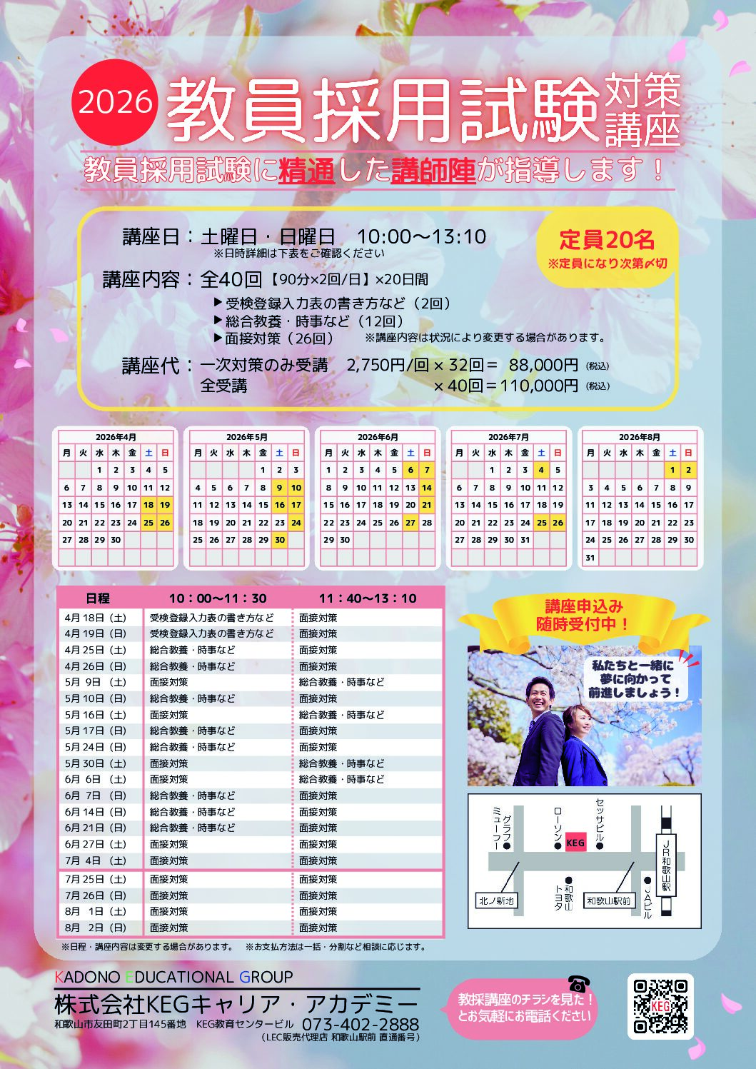 2026年度和歌山県教員採用試験 受験をお考えの方!